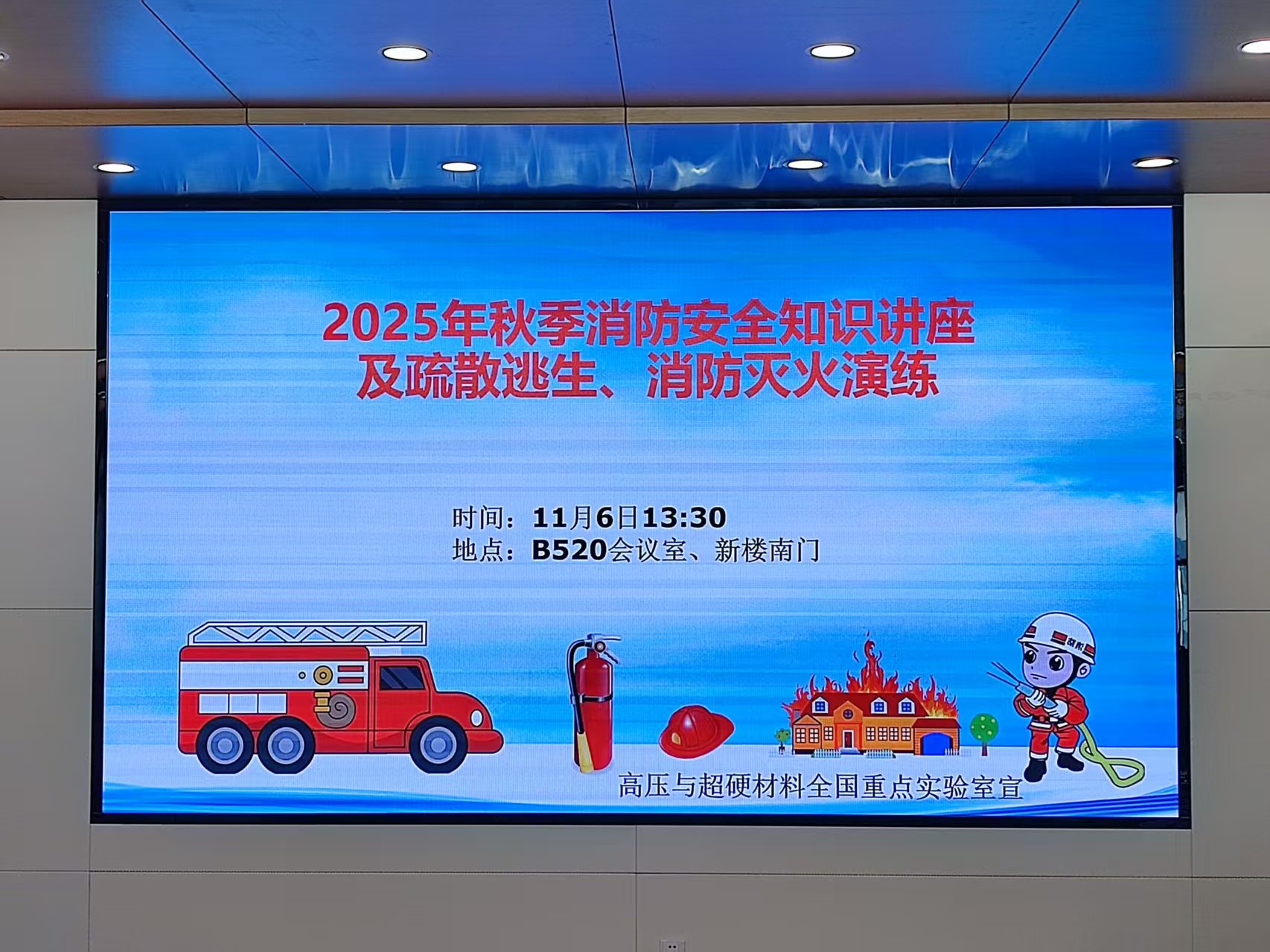 为全面提升师生消防安全责任意识和自防自救能力,11月6日下午,高压与超硬材料全国重点实验室、综合极端条件高压科学中心联合保卫处在超硬楼举办消防安全知识讲座及疏散逃生、消防灭火演练活动。
